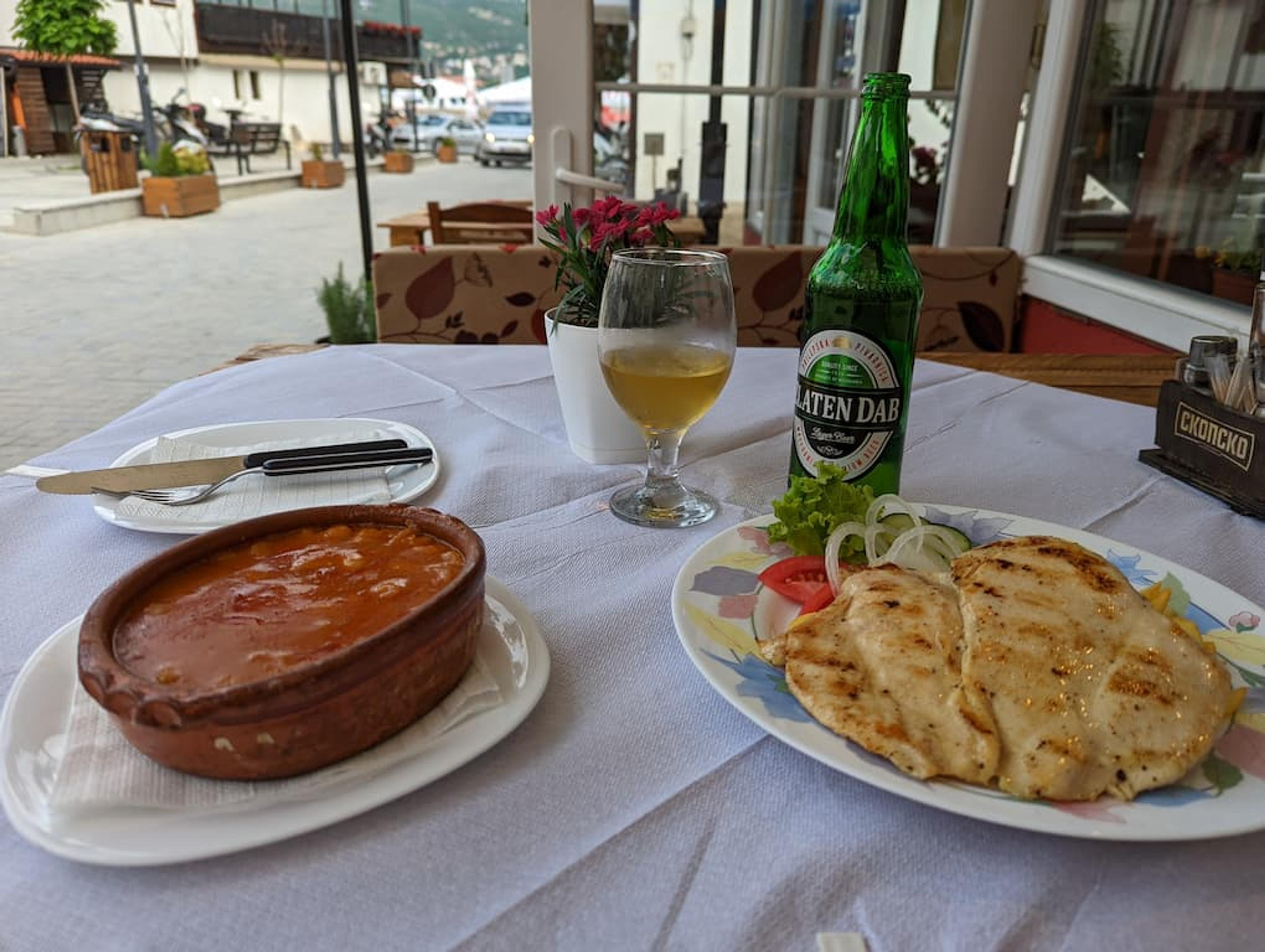 I pulled myself away from the darts matches to appease my grumbling stomach in search of food. Rather than trawling through all the restaurants I just went with the one suggested by the hostel for some local cheap eats, grabbing some Tavče gravče (baked beans) and grilled chicken, standard basic behaviour for me at this point in the balkans.