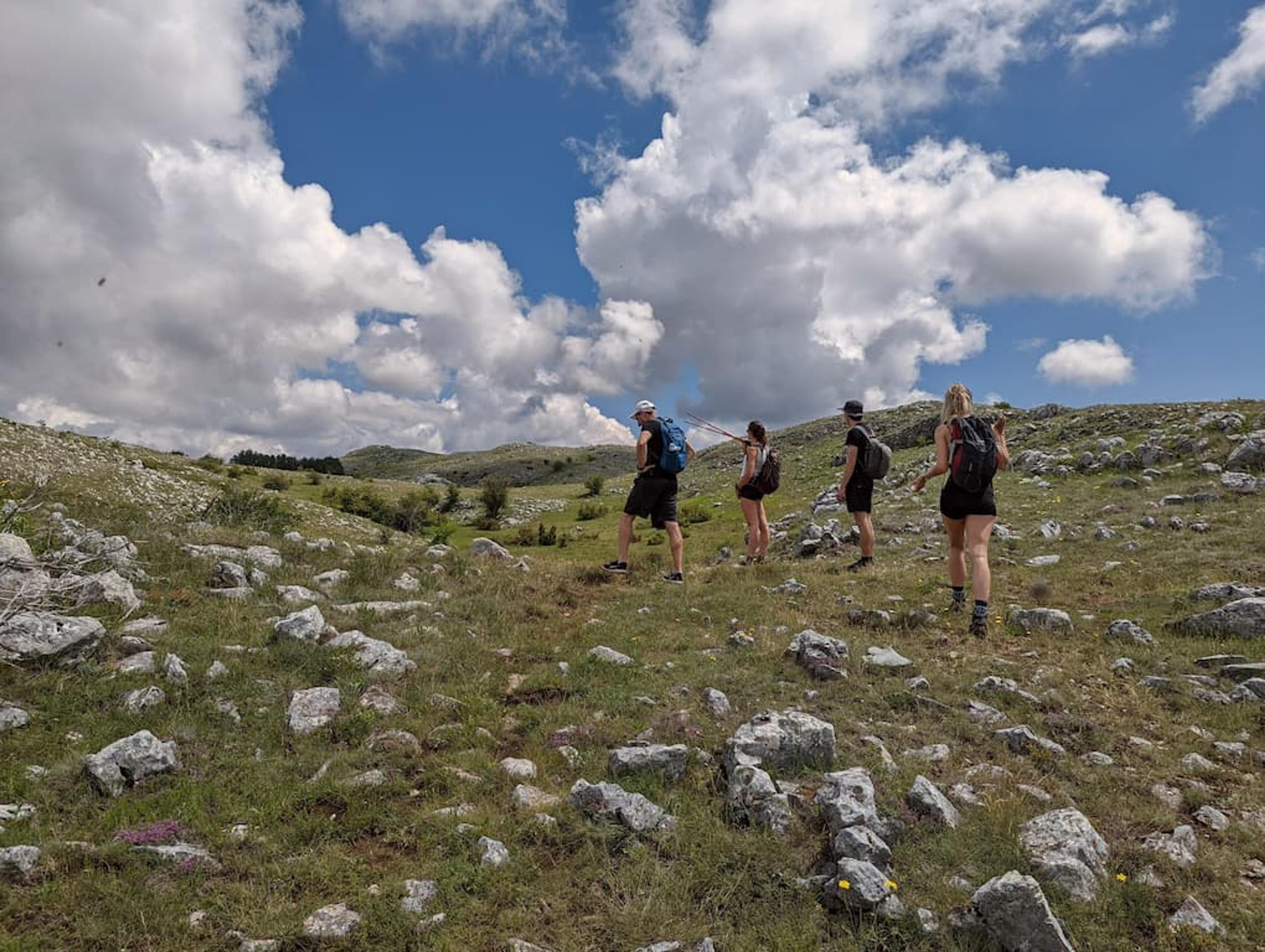 We drove up to a small village called Velestovo and started the hike from there. There's not much there except somewhere to fill your water bottle from a spring, I can't remember seeing a shop or even a restaurant. To begin with there was a slightly steep ascent then relaxed a little, walking through forests providing some cover from the sun bearing down. When we reached up to the hill and rocky peaks the real challenge started where we were swarmed by an uncomfortable amount of flies which hitchhiked on our bags, heads and shoulders. The crawling feeling was the worst and standing still for more than 10 seconds had the flies dive bombing towards the moisture of your eyes and shooting past your ears, making it sound like you were trackside at the Silverstone. I also had the unfortunate situation of a fly lodging itself far up my nose and having to forcefully eject it.